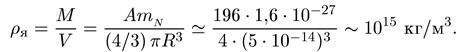 т. е. оно, по крайней мере, в 104 раз меньше атома. Отсюда сразу следует, что плотность ядерной материи громадна по сравнению с теми веществами, с которыми мы имеем дело в повседневной жизни. Действительно, плотность ядра золота (А = 196)
