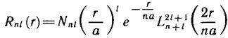 Здесь L — полиномы переменной величины x = 2r/na, вычисляющиеся по полиномообразующей формуле(они называются полиномами Лагерра):