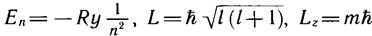 Задача об атоме водорода выше решена в общем виде. На основе полученных результатов можно детально описать стационарные состояния электрона. Они определяются тройкой квантовых чисел n, l и m. Квантовые числа позволяют рассчитать для каждого состояния значения трех физических величин, имеющих одновременно определенные значения. Это энергия, момент импульса и его проекция: