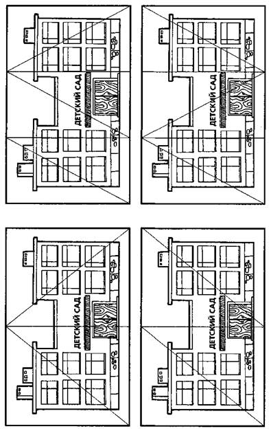 Рис. 46 600 Логопед. Что вы можете рассказать о нем? Какой он? Дети. Он большой, красивый. Около него растут высокие деревья. На площадках есть песочницы, качели, горки, скамейки. Логопед. Сейчас вы достанете из конвертов разрезные картинки и сложите такое же изображение детского сада из частей. Дети выполняют задание. Логопед оказывает помощь, если это необходимо. 4. Подвижная игра «На закате тучки тают». [Координация речи с движением, закрепление умения двигаться по кругу в общем для всех темпе.] Дети выходят на ковер и образуют круг.