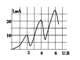 12. Пример: Вольтамперная характеристика в опытах Франка и Герца полученная для некоторого газа имеет вид (см рис). Первый потенциал возбуждения газа (в эВ)
