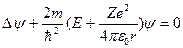 Стационарным уравнением Шредингера для электрона в водородоподобном ионе является уравнение: