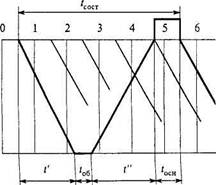 Графически его можно представить на рис. 4.4. Величина оборота /сост, ч, пассажирского состава определяется по формуле 'сост = ''-Чб+'"+'осн> (4.11) где (', I" — время в пути при следовании от станции приписки до станции оборота и обратно;?об, /осн — время нахождения состава на станции оборота и приписки.