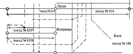 -------------- о I ^ поезд №013 Одесса поезд № 020 Старая Русса поезд № 6607 I { поезд №013 --------------- Беспересадочный вагон ---------------- Прицепной вагон ,„,„™.,„™™™™»%,. Направление следования поезда Рис. 4.5. Схема обращения беспересадочных и прицепных вагонов Возникают дополнительные затраты не только на реконструкцию помещений, но и эксплуатационные расходы, связанные с обслуживанием одного пересаживающегося пассажира. Решая вопрос улучшения качества пассажирских перевозок, следует помнить и об организации их в смешанных сообщениях. В настоящее время перевозки в железнодорожно-речном и железнодорожно-морском сообщениях приобретают все большее значение. Широкое развитие получают автомобильные и скоростные авиационные перевозки. Безусловно, любые затруднения при переходе пассажира с одного вида транспорта на другой могут вызвать осложнения и дополнительные потери времени на поездку. Поэтому кроме сооружения совместных вокзалов, упрощения оформления проездных документов (продажа единых билетов) необходимо четко согласовывать расписание движения поездов, автобусов, судов и самолетов. Движение в смешанном сообщении должно быть организовано на основе изучения мощности и характера пассажиропотоков с тем, чтобы при переходе на другой вид транспорта все пассажиры были бы обеспечены местами. Схема обращения беспересадочных и прицепных вагонов приведена на рис. 4.5. 4.11. Разработка графика движения. Расписание пассажирских поездов Разрабатывать график и расписание движения пассажирских поездов сложнее, чем грузовых. Перед разработкой графика на дорогах проводятся технико-экономические обследования для выявления районов тяготения населения к железнодорожной линии, характера и объема предстоящих пассажиропотоков, собираются заявки и предложения учреждений и предприятий, проводятся очные и заочные конференции пассажиров, анкетирование пассажиров в поездах и т. д. На основании специального Указания МГТС России об утверждении нормативов составления графика движения пассажирских поездов на железных дорогах производится переработка нормативных документов с последующим представлением их в МПС России. После определения размеров движения и распределения их по направлениям разрабатывается график движения поездов. При составлении графика необходимо максимально сохранить действующее расписание пассажирских поездов постоянного обращения и свести работу к минимальной корректировке существующих расписаний и прокладке новых «ниток» для выполнения заданий МПС России по освоению пассажиропотоков. Частое изменение графика отправления поездов из крупных узлов нежелательно для пассажиров. Разработка новых и корректировка существующих расписаний осуществляется в три этапа: 1. Анализ действующих расписаний и определение точек прибытия и от 2. Разработка принципиальной схемы (эскиза) графика для основных на 3. Подробная прокладка пассажирских поездов по участкам. Анализом действующего расписания выявляется соответствие числа поездов запланированному поездопотоку, использование мест в поездах, рациональность композиции составов, уточняются перегонные времена хода, станционные и межпоездные интервалы, условия согласования расписаний в узлах, качество увязки с грузовым движением и т.д. Особое внимание при анализе уделяется