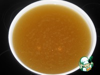 | Пока мы занимались мясом, настоялся бульон. Его мы обязательно процеживаем (я это сделала через ситечко).