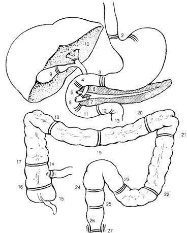 полностью, что нередко является причиной срыгивания у детей и возникает проблема – высокий риск аспирации. У доношенных детей вместимость желудка составляет 30 — 35 мл, в возрасте 2 мес. — 90—100 мл, 1 года — 250 мл. Желудочный сок у грудного ребенка по составу почти не отличается от желудочного сока взрослого, однако его кислотность и активность ферментов значительно ниже. Кишечник у грудного ребенка относительно велик, его длина в 6 раз Кишечник наиболее интенсивно растет на 1-м году жизни. К особенностям его у детей следует отнести большую проницаемость кишечного эпителия для продуктов неполного переваривания пищи, токсинов и микроорганизмов, чем обусловлена опасность развития токсикоза, прежде всего при ряде кишечных инфекций. Кишечник новорожденного ребенка стерилен, но спустя 10 —20 ч после рождения он заселяется разнообразными микроорганизмами, попадающими из воздуха, с сосков матери и предметов ухода. В кишечнике детей, находящихся на грудном вскармливании, микрофлора представлена в основном бифидобактериями. что считается физиологическим для грудного ребенка. Лишь в небольшом количестве встречаются фекальный стрептококк (энтерококк) и кишечная палочка. При искусственном вскармливании микрофлора изменяется, в кишечнике в основном обитает кишечная палочка. У детей более старшего возраста преобладающей микрофлорой являются кишечная палочка и фекальный стрептококк, особенно в ободочной и прямой кишках. Для жизнедеятельности организма микрофлора кишечника имеет существенное значение. У здорового ребенка микрофлора кишечника обладает защитными, антитоксическими свойствами, под ее влиянием подавляются и уничтожаются патогенные и гнилостные микроорганизмы. Она способствует также синтезу витаминов группы В. Помимо этого, некоторые микроорганизмы, обладающие ферментными свойствами, необходимы для процессов пищеварения. Печень в организме выполняет разнообразные и очень важные функции. У новорожденных и детей грудного возраста она относительно велика, примерно в 2 раза больше, чем у взрослого. Печень очень богата кровеносными сосудами, соединительнотканных элементов мало, до 6 —8 лет развитие гепатоцитов (печеночных клеток) остается еще не законченным. Функциональная деятельность печени в раннем возрасте недостаточна. Печень является естественным барьером для экзогенных и эндогенных веществ (токсинов и микроорганизмов), поступающих из кишечника. В ней откладываются питательные вещества — гликоген, белки, жиры. Печень играет важную роль во всех видах обмена веществ. Она вырабатывает желчь, у детей в желчи содержится мало желчных кислот и таурохолевая кислота преобладает над гликохолевой. Это обеспечивает сильное антисептическое действие желчи, к тому же под влиянием таурохолевой кислоты усиливается отделение сока поджелудочной железой. Процессы пищеварения у детей имеют некоторые особенности. В полости рта пища подвергается воздействию слюны, которая содержит два амилолитических фермента — амилазу и птиалин, расщепляющих полисахариды (крахмал, гликоген) до стадии дисахаридов. В грудном молоке крахмала нет, поэтому малое количество слюны в первые месяцы жизни не нарушает пищеварения. Желудочный сок содержит все элементы, необходимые для пищеварения — ферменты, хлористоводородную кислоту. При вска