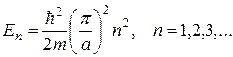 Отже, стаціонарні стани в необмежено глибокій ямі реалізуються при таких дискретних значеннях енергії:
