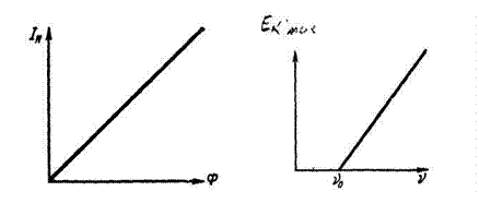 где е — заряд электрона, n — число электронов, попадающих Законы внешнего фотоэффекта. Приведем три основных I. При постоянном спектральном составе потока излучения Iн = γ·Ф, (2) γ - называют интегральной чувствительностью фотокатода. Зависимость (2) называется люкс-амперной характеристикой фотоэлемента, график ее представлен на рис. 3. Закон был