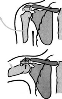 Рис. 5.18. Защемление головки плечевого сустава под акромионом.