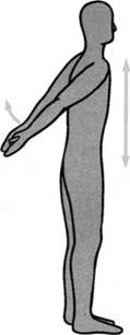 Важную группу образуют нижние мышцы фиксаторы лопаток, которые ответственны за то, чтобы лопатки сохраняли свое положение в корпусе и в том случае, когда оно меняет свое горизонтальное положение. Если эти мышцы не работают, или работают в недостаточной степени, это компенсируется работой мышц в затылочной части, что весьма нередко ведет к их перенапряжению. Если вы внимательно рассмотрите рис. 5.15, то увидите, что по своему расположению и форме глубокие мышцы спины напоминают елку. Эта особая конструкция распределяет все, направленные в сторону позвоночника, силы по всей его длине, так что ни один сегмент не несет чрезмерной нагрузки. Знания эти лежат в основе всех учений о положении спины и об осанке. Вы сможете ощутить это в полной мере, сделав следующее упражнение. Сядьте на табурет и снова, в виде исключения, примите непринужденную позу с согнутой спиной. Закройте глаза и вытяните вперед руки примерно под прямым углом. Вы почувствуете, насколько они тяжелы (рис. 5.16). А благодаря чему сохраняется их стабильное положение, и где вы ощущаете наибольшее напряжение мышц? Теперь опустите руки вниз, немного встряхните их, затем медленно распрями те спину, начиная от таза, и повторите то же упражнение с уже выпрямленным позвоночником. Вы ощутите явную разницу: когда вес рук будет распределен по всей спине, они будут для вас более легкими и уже не станут подобно рычагу нагружать только один сегмент позвоночника.