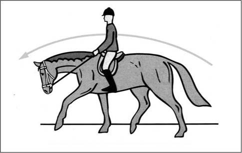 7. и в лучшем случае она может хорошо размяться, но спина ее уже не сможет пружинить (рис. 7.9). Насколько глубоким должно быть это выгибание? В теории существуют такие вспомогательные показатели: нос лошади должен быть на уровне стремени (рис. 7.8). На самом же деле это зависит и от ситуации, и от уровня подготовки. Существует много разных путей выработки хорошей программы растяжки. Но всякий раз ее надо подгонять под конкретную лошадь, конкретного всадника и под фактический уровень его подготовки. Я не собираюсь предлагать каких-то запатентованных рецептов. Скорее, речь идет о том, что вы должны постараться еще глубже почувствовать свою лошадь и самостоятельно найти для себя оптимальную программу расслабления. Причем, она должна меняться в зависимости от особенностей дня. Многие лошади быстрее раскрепощаются, если их предварительно работают на корде, другим это проще сделать на галопе, а не на рыси; одни расслабляются на полуодержках, в момент смены темпа или аллюра, другим нужна работа на изогнутых линиях, третьим нужно галопировать по скаковой дорожке ипподрома, а четвертые любят работу с кавалетти, гимнастические прыжки или прыжки на свободе. Палитру этих возможностей можно легко расширить. Важно только, что при всем этом многообразии основное требование остается прежним: движение идет сзади в сторону рта лошади, игра между воздействием посылающих и сдерживающих средств управления, благодаря которому и спина лошади может совершать пружинящие движения.