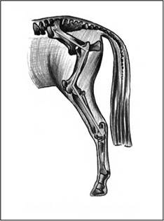 Сбор При работе над сбором резиновая лен та также играет решающую роль. При сборе лошади толкающая сила задней ноги преобразуется в тягловую, и лошадь заступает под центр тяжести, сильнее сгибая бедра (рис. 7.10). За счет усиленного прогибания бедер передняя часть корпуса лошади разгружается, тем самым в большей степени раскрепощаясь для движения. Шея и затылок обращены вперед и вверх, так что рот лошади находится приблизительно на уровне ее тазобедренных суставов.