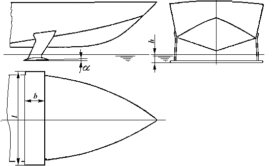 В простейшем случае полностью погруженное подводное крыло представляет собой тонкую прямоугольную удлиненную пластинку, расположенную под корпусом судна в поперечном направлении и жестко скрепленную с ним стойками. При этом плоскость крыла с направлением движения судна составляет некоторый угол атаки На современных судах для обеспечения возможно более высоких гидродинамических и мореходных качеств подводным крыльям нередко придают более сложную форму: делают их килеватыми по виду спереди, стреловидными в проекции плана, с разными углами атаки по размаху и т. д.