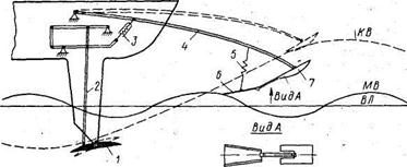 Рис. 3.4. Принципиальная схема крыльевого устройства X. Гука. / — основное крыло; 2 — основная тяга; 3 — демпфер; 4 — выносная штанга-кронштейн; 5 — пружина; 6 — глиссирующая пластина; 7 — вспомогательное крыло; ВЛ — расчетная ватерлиния на тихой воде; MB — малые волны, на которые система не реагирует; KB — крутая волна, отклоняющая крыло со штангой 2. Глубокопогруженные крылья, управляемые электронными автоматическими, системами, обеспечивают высокую стабилизацию движения СПК и дают возможность получить приемлемую для пассажиров степень комфортабельности с вертикальными перегрузками, не превышающими 0,25g. Однако широкое внедрение таких управляемых ГПК на пассажирских судах сдерживается сложностью и высокой стоимостью электронных автоматических систем, к которым предъявляются исключительно жесткие требования в отношении надежности, поскольку выход САУПК из строя лишает судно возможности двигаться в крыльевом режиме. Date: 2015-05-19; view: 926; Нарушение авторских прав |