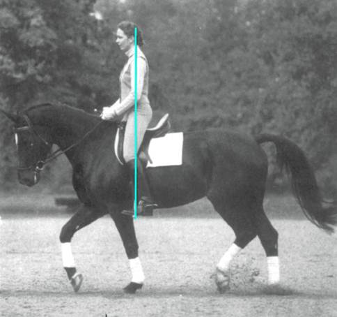 чтобы другие участки тела могли самостоятельно участвовать в движении. Только так можно сопровождать тазом движение лошади, только так ваша рука может стать независимой и свободной. А теперь снова представьте себе верхнюю часть корпуса в форме башенки. На находящийся в равновесии таз по вертикали надстраиваются грудная клетка и голова. Еще раз спокойно нащупайте мышцы живота и спины, немного наклонитесь с закрытыми глазами вперед и назад, найдите свою собственную среднюю позицию, так же, как вы это делали дома, сидя на табурете, а теперь на двигающейся лошади. Нащупайте верхний и нижний концы грудины и проверьте, находятся ли эти точки друг над другом по вертикали и остается ли такое положение стабильным во время езды (рис. 4.23). При езде шагом нередко приходится наблюдать, как сильно раскачивается корпус всадника, нижний конец грудины сдвинут назад и вниз, что отнюдь не соответствует правильному положению всадника на лошади. Попробуйте несколько раз сознательно привести себя в такое положение, когда нижний конец грудины находится прямо под верхним, а после этого они должны сдвигаться вперед, при этом оставаясь параллельными друг другу. Уясните себе также, что диафрагма лучше всего может работать именно в такой средней позиции. Посмотрите на других всадников и проконтролируйте себя, особенно при сменах аллюра и на остановке, когда слабые места в посадке больше всего заметны. Слишком сильное опрокидывание верхней части корпуса назад или мешковатая посадка — все это приходится наблюдать довольно часто. Если мысленно вы уже «выстроили» свое туловище в форме башенки, сосредо- точьтесь теперь на боковом распределении веса. Достаточно ли хорошо вы ощущаете свое основание посадки и чувствуете амплитуду движения корпуса, которое необходимо для распределения веса?