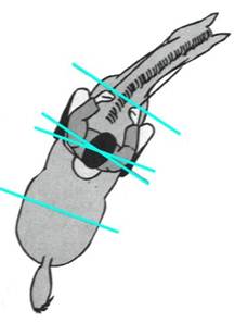 Боковое сгибание, происходящее от головы до хвоста лошади, представляет собой как можно более равномерное выгибание ее позвоночника в сторону. Сгибание ограничивается корпусом лошади, особенно ребрами и жестко сросшимися между собой поясничными позвонками. Максимальное сгибание требуется в углах и на вольту, меньшее сгибание — на всех кривых линиях. Как правило, сгибание в одну сторону всегда удается легче, чем в другую. Лошади, точно так же, как и люди, от рождения имеют хорошие и плохие черты. Важным условием правильного сгибания является сбалансированное положение всадника в движении; лишь тогда он сможет независимо от этого положения воздействовать на лошадь. Большое значение при этом имеет баланс верхней части корпуса всадника. Лично мне понять механизм правильного сгибания помогло то, что я представила себе будто шея лошади — это мой собственный позвоночник. И если лошадь подняла бы свою шею вертикально вверх, то мой корпус должен быть с ней идентичен: ее уши — на уровне моих (рис. 7.21).