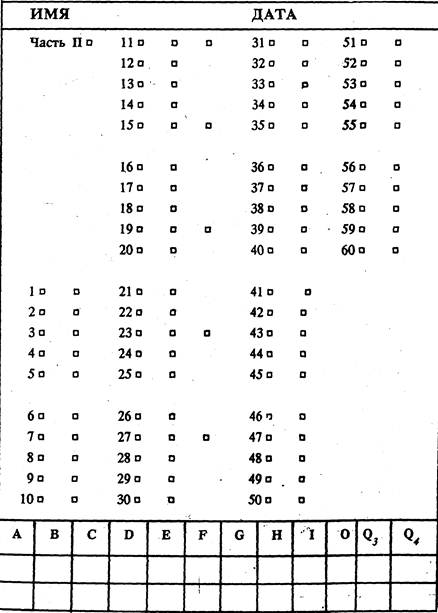 Примечание. Ключ рекомендуется использовать наложением на I и II части бланка ответов испытуемого, предварительно прорезав отверстия на месте черных квадратиков.