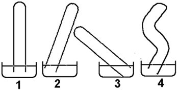 16. В какой жидкости утонет дубовый брусок? Плотности: дуба – 700 кг/м3; воды – 1000 кг/м3, керосина – 800 кг/м3, спирта – 800 кг/м3, бензина – 710 кг/м3. А) В воде; 17. Тело объемом 0,2 м3 погружено в машинное масло. Какова архимедова сила, действующая на тело? Плотность масла 900 кг/м3. А) 90 Н; 18. Мальчик массой 60 кг плавает на поверхности воды в море. Чему примерно равна сила Архимеда? А) 60 Н; IV. Применение знаний в усложненной ситуации 19. На одинаковой ли высоте установится ртуть в трубках 1–4 в опыте Торричелли?