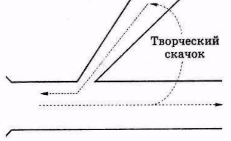 Та же модель асимметричных шаблонов объясняет и возникновение творческих идей. Временная последовательность опыта образует привычный способ восприятия. Мы привыкаем видеть вещи в определенном свете и ожидаем, что события станут происходить так-то и так-то. Если каким-то образом нам удается сойти с главного пути и проникнуть «с черного хода» на боковое ответвление, мы сможем двигаться в обратном направлении и пережить «творческое озарение» или выудить новую идею, как показано на рисунке 1.11.