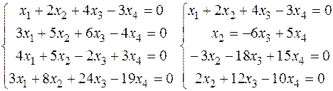 Загальний розв’язок системи (8х3-7х4,-х3+5х4,х3,х4),х3,x4єR. Для знаходження базису простору складемо табличку