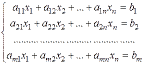 яка одержується з системи (2) заміною вільних членів нулями, називається зведеною системою для системи (2). Зв’язок між розв’язками систем (2) і (3): 1. Сума будь-якого розв’язку системи (2) з будь-яким розв’язком зведеної системи (3) знову буде розв’язком системи (2). 2. Різниця будь-яких двох розв’язків системи (2) є розв’язком для зведеної системи (3). Наслідок. Знайшовши один розв’язок системи лінійних неоднорідних рівнянь (2) і додавши до нього кожний з розв’язків зведеної системи (3), ми одержимо всі розв’язки системи (2). Приклад. Знайти загальний та один частинний розв’язок системи лінійних рівнянь: