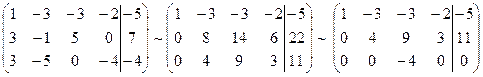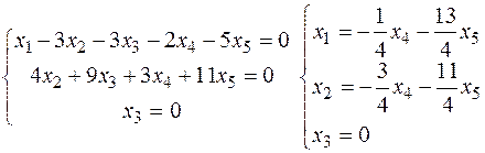 Загальний розв’язок СЛОР (-1/4x4-13/4x5, -3/4x4-11/4x5, 0,x4,x5), x4,x5 є R. Частинний розв’язок СЛР (1,1,0,0,0). Загальний розв’язок СЛР (1-1/4x4-13/4x5, 1-3/4x4-11/4x5, 0,x4,x5), x4,x5 є R.