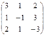 Означення. Нехай дано матриці А=(аij)m*n, В=(bij)m*n над полем Р. Матриця (аij+bij)m*n називається сумою матриць А і В і позначається А+В; при цьому матриці А,В називаються доданками. Операція, яка матрицям А і В ставить у відповідність матрицю А+В називається сумою матриць. А+В=(аij+bij) Властивості додавання матриць: 1) Операція додавання матриць комутативна, тобто для А=(аij)m*n, В=(bij)m*n однакового розміру А+В=В+А; 2) Операція додавання матриць асоціативна, тобто А=(аij)m*n, В=(bij)m*n, С=(сij)m*n однакового розміру (А+В)+С=А+(В+С); 3) В множині матриць А даного розміру існує одна матриця О, яка є нейтральним елементом відносно операції додавання матриць, тобто така, що "А A+О=О+A=A, її називають нульовою матрицею; 4) В множині матриць даного розміру для кожної матриці А існує єдина протилежна матриця А¢¢, тобто така, що A+A¢¢=A+A¢¢=O. Приклад. Дано матриці А і В. Знайти А+В і В+А і порівняти їх. A = A+B = B+A = Отже, А+В=В+А. Приклад. Дано матриці А і В. Знайти А+В. А = Сума матриць А+В, В+А не існує, оскільки матриці різної розмірності. Умови існування суми матриць: матриці повинні бути однакового розміру. Означення. Нехай дана матриця А=(аij)m*n над полем Р і елемент k є Р. Добутком матриці А на елемент k називається матриця (kаij)m*n, яка позначається kA. Властивості множення матриці на скаляр: 1) Операція множення матриці на скаляр асоціативна в тому розумінні, що для довільної матриці А і чисел k,l є Р: k(lA)=(kl)A=klA; 2)Операція множення матриці на скаляр дистрибутивна відносно додавання матриць і відносно додавання скалярів, тобто "A "k,l є Р (k+l)A=kA+lA "A,B "k є Р k(A+B)=kA+kB, де А і В однакового розміру. Приклад. Дано матриці А і В, скаляри k,l. Знайти (k+l)A,k(A+B). A = (k+m)A = (2-1) k(A+B) = 2 Означення. Дано матриці А=(аij)m*n і В=(bsk)n*l, які належать полю Р. Матриця (сpq)m*l, де сpq=ap1b1q+ap2b2q+…+apnbnq називається добутком матриці А на матрицю В і позначається АВ. При цьому матриця А називається лівим множником, матриця В – правим множником. Операція, яка матрицям А і В ставить у відповідність матрицю АВ, називається множенням матриць. Отже, АВ=(сpq), де сpq=ap1b1q+ap2b2q+…+apnbnq, тобто сpq є сумою добутків відповідних елементів р-го рядка і q-го стовпчика. Зауваження. Добуток мартиць існує тоді і лише тоді, коли кількість стовпчиків першої матриці дорівнює кількості рядків другої матриці. Властивості множення матриць: 1) Операція множення матриць в загальному випадку некомутативна. Але існують такі матриці А,В, що АВ=ВА. Наприклад, АЕ=ЕА=А, АО=ОА=О. Якщо матриці А і В задовольняють умову АВ=ВА, то такі матриці є перестановочними або комутативними. Комутативними є лише квадратні матриці. 2) Операція множення асоціативна, тобто "А,В,С (АВ)С=А(ВС) 3) Асоціативність множення матриці на матрицю і на скаляр "А,В "k,l є Р (kA)B=k(AB) A(kB)=(Ak)B=(kA)B 4) В множині квадратних матриці n-го порядку існує єдина матриця E, яка є нейтральним елементом відносно операції множення матриць, тобто така, що "А (AE=EA=A) Для множини прямокутних матриць А розміром m*n можна говорити про існування односторонніх нейтральних елементів, тобто таких матриць В і С, що "А (АВ=СА=А). Операції додавання і множення матриць А і В одночасно можна виконувати лише тоді, коли А і В – квадратні матриці одного порядку. В множині квадратних матриць n-го порядку мають місце дистрибутивні закони (правий і лівий) множення відносно додавання: "А,В,С- n-го порядку (А+В)С=АС+ВС С(А+В)=СА+СВ. З сказаного вище слідує, що множина всіх квадратних матриць n-го порядку на