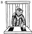 Рис. 3.9. Схема опытов по изучению отсроченных реакций. А — демонстрация приманки и пустого контейнера; Б — приманку и пустой контейнер закрывают от животного непрозрачным экраном; В — экран убирают, и животное имеет возможность достать приманку, положение которой не изменилось При следующем предъявлении этого теста контейнер с приманкой может располагаться слева. В процессе обучения у животного формируется «когнитивная карта» всех признаков лабиринта, или его «мысленный план». Затем на основе этого «плана» животное выстраивает свое поведение. Толмен и его последователи исследовали формирование «мысленного плана» («карты») с помощью лабиринтов разных конструкций, траекторию движения в которых животные могли менять в зависимости от того, были ли им доступны более короткие пути. В работе Н. Чапиуса и П. Скардигли (цит. по: Реагсе, 1998) хомячка помещали в камеру А гексагонального лабиринта (рис. 3.10А), в котором ему «надлежало» пройти за пищей по пути, указанному штриховой линией. От этой дороги хомячок не отклонялся, поскольку все входы в другие отсеки были закрыты. После запоминания этого пути во время целого ряда предъявлении задачи в лабиринте открывали все дверцы, за исключением той, которая позволяла попасть к корму по прямой. Теперь кратчайшим путем к пище стала траектория через центр (сплошная линия). Этот путь можно уверенно найти, только имея «мысленный план» данного лабиринта. После определенной тренировки хомячки выбирали этот путь достоверно чаще, чем остальные. Два других примера, взятых из работы самого Толмсна, показывают, как животное находит новый путь к пище, если знакомая дорога перекрыта (рис. 3.10Б и В). Образование «мысленного плана» может происходить и в отсутствие подкрепления, в процессе ориентировочно-исследовательской активности. Этот феномен Толмен назвал латентным обучением (см. 3.4.2). Сходных взглядов на организацию поведения придерживался И. С. Бериташвили (1974). Ему принадлежит термин — «поведение, направляемое образом». Бериташвили продемонстрировал способность собак к формированию представлений о структуре пространства, а также «психонервных образов» предметов. Ученики и последователи И. С. Бериташвили показали пути видоизменения и совершенствования образной памяти в процессе эволюции (Натишвили, 1987), а также в онтогенезе (Бадридзе, 1987), базируясь на данных по пространственной ориентации животных. Гипотеза о когнитивных механизмах многих форм поведения закономерно возникала у исследователей, пытавшихся осмыслить данные самых разнообразных экспериментов. Американский ученый Д. Гриф-фин (Griffin, 1984) в книге «Мышление животных» («Animal thinking») в популярной форме рассматривает факты, хотя и не всегда действительно относящиеся к сфере мышления животных, но явно не получавшие объяснения в терминах бихевиоризма (например, орудийная деятельность и сложные виды коммуникации). Когнитивная психология человека — направление, возникшее как реакция на господство идей бихевиоризма в области изучения психики человека, — оказала влияние на исследования когнитивных процессов