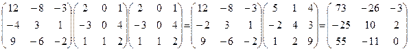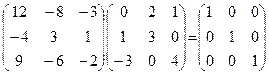 або скорочено АХ=В, де А – матриця системи розміру m*n, а X і B – n- i m-мірні вектори-стовпці: X = які називаються вектором невідомих і вектором вільних членів відповідно. Якщо В=О, то одержимо матричну форму СЛОР: АХ=О. Щоб розвязати СЛР так званим “матричним методом”, необхідно розвязати матричні рівняння виду: а) АХ=В, тоді домножимо обидві частини рівняння на А-1 зліва А-1AX=A-1B => EX=A-1B =>X=A-1B. б) ХА=В, тоді домножимо обидві частини рівняння на А-1 справа XAA-1=BA-1 => XE=BA-1 => X=BA-1. в) АХВ=С, тоді домножимо обидві частини рівняння на A-1 зліва і на В-1 справа. А-1AXBB-1=А-1CB-1 => EXE=А-1CB-1 => X=А-1CB-1 Приклади. 1) Розв’язати рівняння: Х ХА=В => XAA-1=BA-1 => X=BA-1