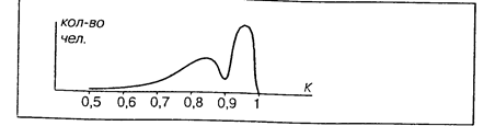 Рис. 2. Характеристика распределения показателя точности выполнения теста Тулуз-Пьерона (К)