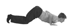 7. «Упор на 8 точек». На выдохе примите упор на ладонях лицом вниз, опираясь о пол пальцами ног, коленями, грудью, подбородком и ладонями.