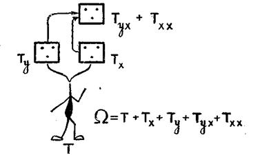 (Т+Тх)ух. (15) Мы представили конфликт в виде символического многочлена Ω. Условимся теперь, что вместо членов вида Тххх или Тххуу будем писать