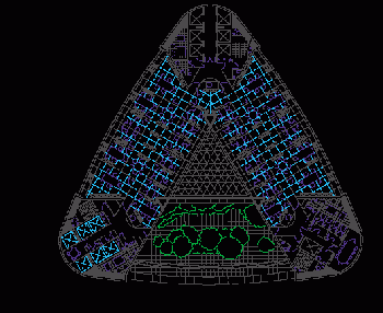 Каждый этаж имеет три крыла, два из которых выделены под офисные помещения, а третье является частью одного из четырехэтажных зимних садов. Четырехэтажные сады – «зеленые легкие» здания, размещенные по спирали вокруг треугольной формы здания, обеспечивают для каждого яруса вид на растительность и устраняют большие объемы неразделенного офисного пространства.