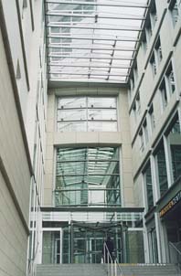 53-этажное здание поднимается ввысь вместе с уже существующим зданием «Commerzbank». При этом Норману Фостеру удалось достичь сочетаемости старого и нового зданий посредством перестройки и обновления периметра граничащих зданий. Главный вход в новое здание расположен с северной стороны, с площади Кайзерплац (Kaizerplatz). Попасть в здание можно по гигантской лестнице, покрытой стеклянной крышей (рис. 3). На первом этаже расположены отделения банков, магазины, рестораны и кафетерии, а также залы для проведения выставок и концертов (рис. 4). Ступенчатая верхушка здания производит сильное впечатление даже на большом расстоянии. Силуэт здания создает четкий символ современного банковского района Франкфурта-на-Майне.