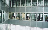 Охлаждаемые теплоемкие перекрытия с замоноличенными трубопроводами используются для естественного охлаждения здания вместо традиционной системы кондиционирования с присущими ей недостатками. Обогрев помещений осуществляется стандартными конвекторами. Сотрудники банка имеют возможность индивидуально контролировать температуру в офисе внутри определенного диапазона. Все функции здания направлены на удовлетворение потребностей сотрудников и в то же время предполагают высокую эффективность использования энергии. Это достигается при управлении инженерным оборудованием «интеллектуальной» системой, которая обеспечивает оптимальный режим работы систем вентиляции, отопления и охлаждения, а также позволяет сотрудникам индивидуально регулировать параметры микроклимата непосредственно в рабочей зоне (рис. 17). Использование естественного освещения Каждое офисное помещение в здании «Commerzbank» расположено в соответствии с требованиями Германского строительного стандарта, который требует, чтобы все сотрудники размещались не далее чем 7,5 м от окон. Прозрачность здания и стеклянные перегородки между офисными помещениями и коридорами позволяют достичь высокого уровня освещенности дневным светом на всех рабочих местах. На каждом уровне одна из треугольных секций здания является открытой и составляет часть зимнего сада. Такая конструкция позволяет каждому офису либо иметь вид на город, либо иметь вид на атриум и сад (рис. 18).