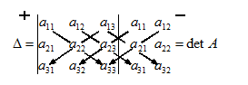 Пример 6. Однако для матрицы размера 3×3 определитель строится сложнее: (3)