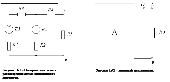 Определить ток в резисторе с сопротивлением сложной цепи методом эквивалентного генератора (рис. 1.6.1), если известно: E1=10B, E2=16B, R1=1Ом, R2=2Ом, R3=3Ом, R4=4 Ом, R5=5 и 10 Ом