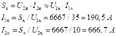 Номинальные токи первичной и вторичной обмоток определим из формулы номинальной мощности трансформатора: