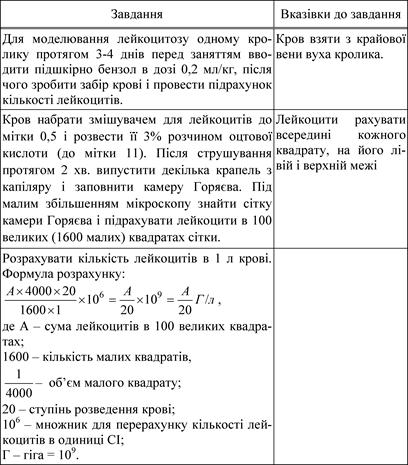 3. Практичні роботи (завдання), які виконуються на занятті: Дослід 1. Визначити кількість лейкоцитів у тварин з експериментальним лейкоцитозом і лейкопенією