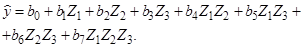 Задание № 7. Исследуется процесс гидратации диизопропилового эфира с целью получения изопропилового спирта. В качестве выходного параметра выбирается выход изопропилового спирта (Y, %). Факторами являлись: Z 1 – температура процесса, °С; Z 2 – расход диизопропилового эфира, л/мин; Z 3 – концентрация диизопропилового эфира, %. Необходимо получить математическое описание процесса по ПФЭ (особый случай) вида