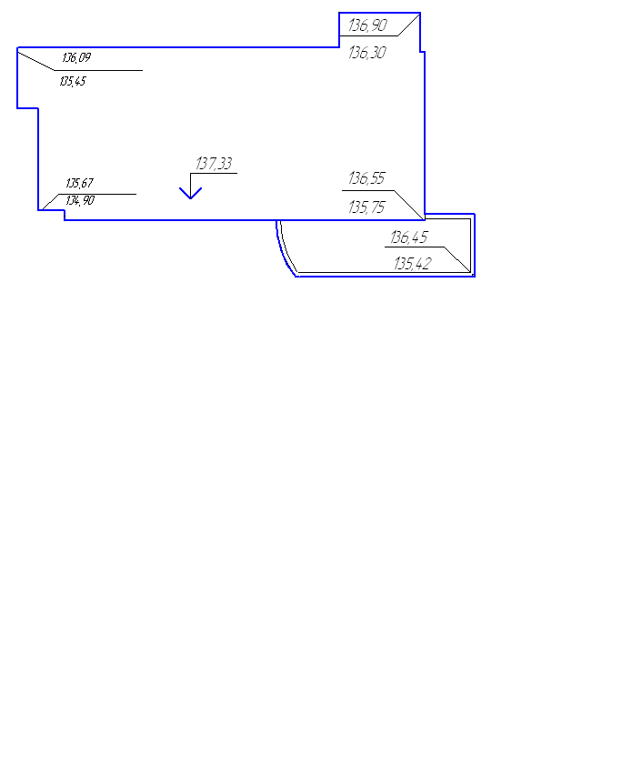 HчА = 135,67 HкрА = 134,90 HчВ = 136,09 HкрВ = 135,45 HчС = 136,90 HкрС = 136,30 HчD = 136,55 HкрD = 135,75 HчЕ = 136,45 HкрЕ = 135,42