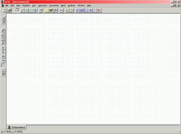 Программа FEMM, состоит из нескольких основных подпрограмм: препроцессора; решателя (fkern.exe с дополнительной программой triangle.exe), и постпроцессора (femmview.exe с дополнительной программой femmplot.exe). Создание новой модели начинается с запуска препроцессора, в котором вводятся геометрические размеры модели и присваиваются свойства ее отдельным частям – блокам. Препроцессор позволяет сохранить модель на диске. Файлу с параметрами модели автоматически присваивается расширение *.fem. Окно программы FEMM при работе в препроцессоре показано на рисунке 1.