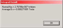 После выбора В.n и щелчка кнопки ОК текущего диалога на экране появится информационное окно Integral Result (Результат интегрирования) со значениями Normal flux (Магнитного потока, нормального контуру) и Average В.n (Средней индукции, нормальной контуру) (рисунок 11).