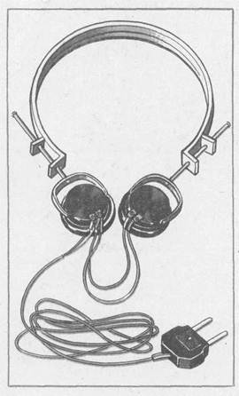 Напряжение смещения на базу транзистора V2 подается через резистор R5. Нагрузкой второго, выходного каскада являются головные телефоны В2 — они включены в цепь коллектора транзистора через разъем X1. Между коллектором и общим проводом питания (плюсом батареи GBI) стоит цепочка из переменного резистора R6 и конденсатора СЗ. Эта цепочка позволяет регулировать тембр по высокой частоте. По мере уменьшения сопротивления резистора усиление каскада на высоких частотах падает, и они, как говорят, «заваливаются». При увеличении же сопротивления резистора конденсатор СЗ не оказывает существенного влияния на усиление каскада. Питание усилителя осуществляется от источника напряжением 4,5 В через выключатель S1. Теперь о деталях усилителя. Транзисторы могут быть типов МП39 — МП42 с возможно большим коэффициентом передачи тока. Постоянные резисторы — МЛТ мощностью не менее 0,25 Вт, переменные — типа СП-1 или другие: резистор R3 можно взять сопротивлением 2,2 — 4,7 кОм, R6 — сопротивлением 6,8 — 15 кОм. Электролитические конденсаторы С1, С2 типов ЭМ, К50-6 или другие, СЗ бумажный, типа МБМ. Разъем Х1 — двухгнездная розетка любого типа, выключатель S1 — тумблер, источник питания — батарея 3336Л от карманного фонаря. При отсутствии такой батареи ее можно составить из трех последовательно соединенных элементов типа 332, 343, 373. Прослушивают грамзапись на головные телефоны ТОН-1, ТОН-2 или им подобные с сопротивлением постоянному току не менее 1 кОм. Указанные телефоны состоят из двух капсюлей, скрепленных оголовьем и соединенных последовательно для получения большого общего сопротивления. Для нашего же усилителя их нужно соединить параллельно (рис. 66), тогда громкость увеличится.