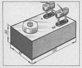 Затем установите рычаг 7 между уголками и пропустите через отверстия в уголках и рычаге винт 22, но не закрепляйте его. Наклоняя рычаг вперед и назад, наметьте на нем снизу места отверстий — они должны быть точно против винтов 16 и 23. Снимите рычаг, просверлите в нем отверстия и вставьте в одно из них винт 14, наденьте на винт лепесток 10 и закрепите винт гайкой 11. В другое отверстие вставьте сверху винт 6 с навинченной гайкой 5, а снизу рычага закрепите винт гайкой 3. Теперь можно зафиксировать рычаг между уголками, пропустив через осевое отверстие винт 22 и закрепив его гайкой 8. А чтобы при работе ключа гайка надежно удерживалась, навинтите вторую гайку 9 (ее еще называют контргайкой). Покачивая рычаг вперед-назад, вы сможете определить зазор между винтами 14 и 16. Для нормальной работы ключа он должен быть 2 — 3 мм. Выбирают зазор винтом 6, который можно ввинчивать или вывинчивать, изменяя расстояние между ним и винтом 23. Чтобы в исходном состоянии между винтами всегда был зазор, то есть передняя часть рычага была приподнята, прикрепите к рычагу сзади пружину 4. Для этого достаточно вбить в рычаг и основание небольшие гвоздики или ввернуть шурупы и натянуть между ними пружину. Силу натяжения подберите экспериментально растяжением или сжатием пружины. Добейтесь, чтобы рычаг наклонялся при нажатии на него с небольшим усилием. Спереди прикрепите к рычагу шурупом 13 ручку 12 (можно использовать, например, ручку от радиоприемника), а снизу к основанию — стойки 15 (шурупами 24). В качестве стоек удобно использовать пластмассовые колпачки от тюбиков с зубной пастой. Между лепестками 10 и 20 припаяйте перемычку из многожильного монтажного провода. К лепесткам 20 и 18 припаяйте проводники в изоляции — ими ключ соединяется с генератором. Как работать на этом ключе, вы уже, наверное, догадались. Нажимая на ручку 12, опускаете рычаг, добиваясь касания винтов 14 и 16. При этом замыкается цепь питания генератора, и в головных телефонах (или абонентском громкоговорителе) раздается звук. Разучив с друзьями телеграфную азбуку, можете устраивать своеобразные соревнования по передаче и приему радиограмм. В этом случае составляется контрольный текст, один из участников передает его, а другой принимает. Побеждает тот, кто сделает меньшее число ошибок. Если первые шаги по изучению телеграфной азбуки окажутся удачными и вы захотите овладеть приемами скоростной передачи и приема сигналов, обязательно запишитесь в кружок радиотелеграфистов или радиоспортсменов в Доме пионеров или радиотехнической школе ДОСААФ.