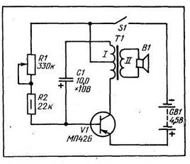 Рис. 103. Схема метронома-приставки к абонентскому громкоговорителю