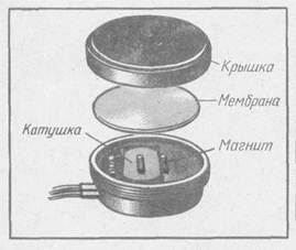 Рис. 140. Устройство капсюля головных телефонов Рис. 141. Устройство «миноискателя»: а — размещение датчика; б — размещение генератора
