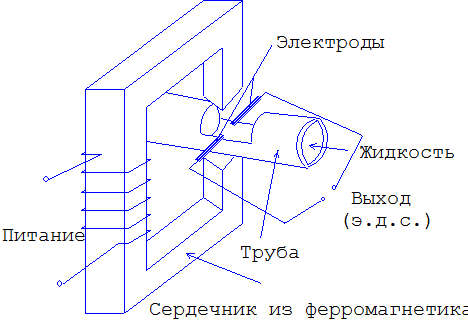 Изменяя длину сердечника из ферромагнетика с постоянным поперечным сечением (уменьшая), изменится (увеличится) магнитный поток через поперечное сечение сердечника, и как следствие изменится (увеличится) значение э.д.с. индукции во вторичном контуре, с точки зрения практики получим измерительный дифференциальный трансформатор. Принцип действия электромагнитного расходомера основан на физическом эффекте названном электромагнитная индукция – в замкнутом проводящем контуре при изменении магнитного поля через поверхность, ограниченную этим контуром, возникает индуцируемый электрический ток и э.д.с. индукции. При прохождении электропроводной жидкости через однородное магнитное поле в ней, как в движущемся проводнике, возникает э.д.с. индукции, пропорциональная средней скорости потока жидкости.