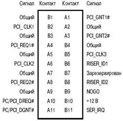 Ðàçúåì ðàñøèðåíèÿ ñ 22-êîíòàêòàìè îáû÷íî óñòàíàâëèâàåòñÿ â øåñòîé ðàçúåì øèíû PCI (âòîðîé ñ ïðàâîé ñòîðîíû). Íóìåðàöèÿ ðàçúåìîâ, êàê ïðàâèëî, íà÷èíàåòñÿ ñ ñåäüìîãî ðàçúåìà, íàèáîëåå áëèçêîãî ê ïðîöåññîðó, è âûïîëíÿåòñÿ ñïðàâà íàëåâî. Ðàñïîëîæåíèå âûâîäîâ ðàçúåìà ATX Riser ïîêàçàíî íà ðèñ. 6.
