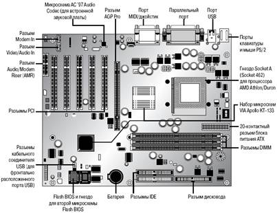 Ðèñ. 11.Ðàñïîëîæåíèå êîìïîíåíòîâ òèïè÷íîé ñèñòåìíîé ïëàòû Socket A (AMD Athlon/Duron)